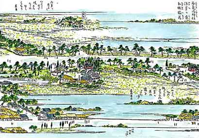ものの本に、玉姫稲荷のあたりは田園の眺望がよく、水鶏(くいな)が名物……とある。いまの建てこんだ家並みからは想像もつかない。 新田義貞が鎌倉高時との戦いに臨んで、弘法大師筆の稲荷像を瑠璃の宝塔にこめて当所におさめたので、〔御玉秘稲荷〕の社号となった。 |