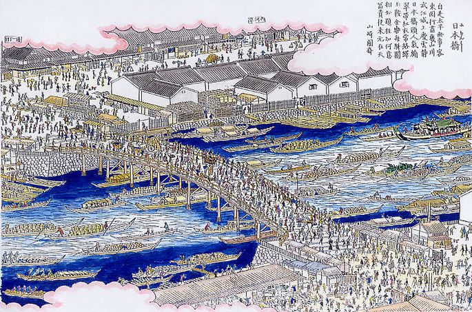 「日本橋」とあっても、橋そのものの場合と、それを冠した町名の記述に分かれる。