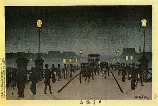 小林清親『東京名所図』[日本橋夜]