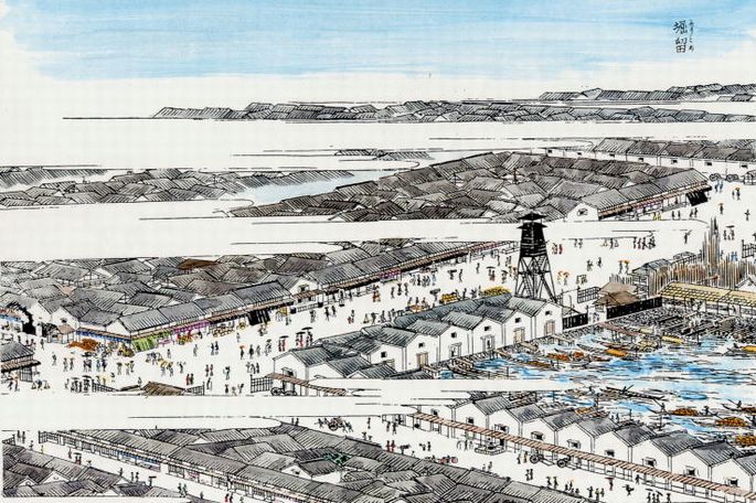 小林清親『東京名所図』[堀留繁花の図]