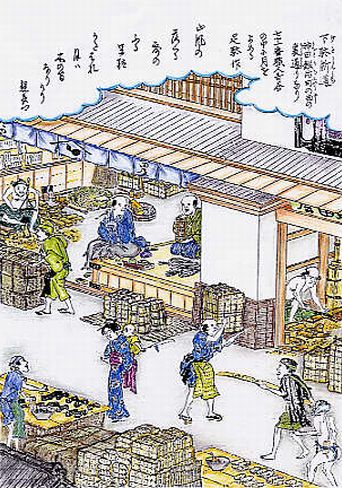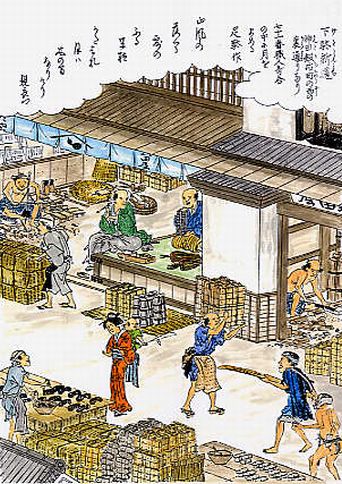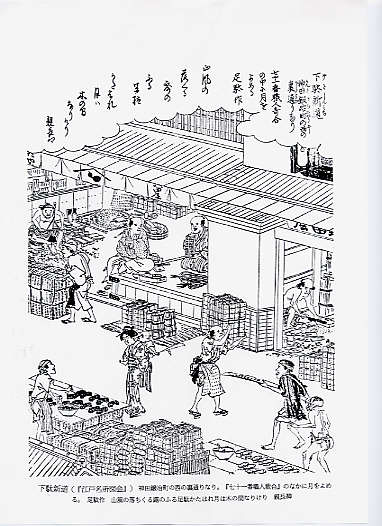 下駄を作ってる店の分業作業の様子が綺麗に描かれてる。