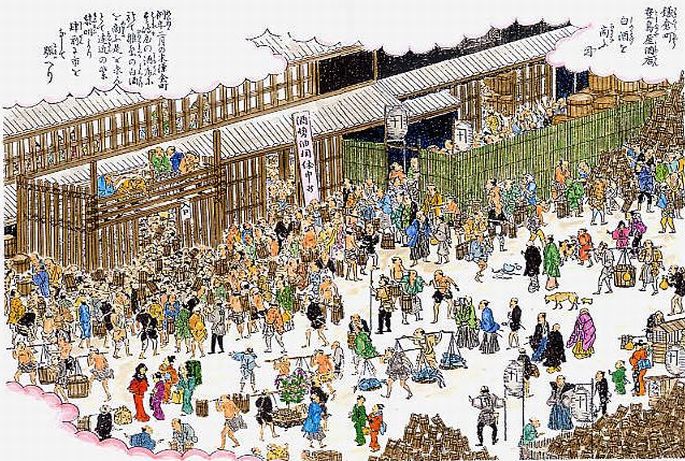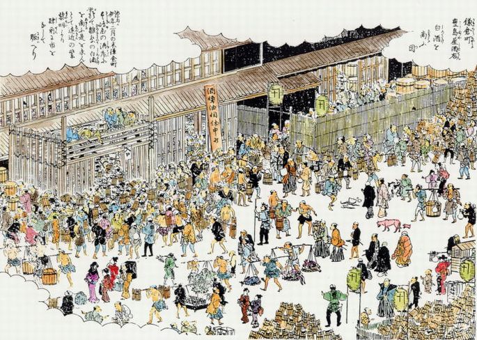 0017鎌倉河岸豊島屋酒店、白酒を商ふ図