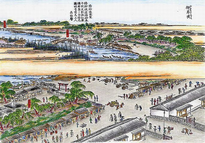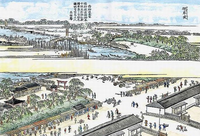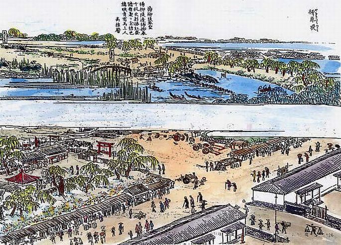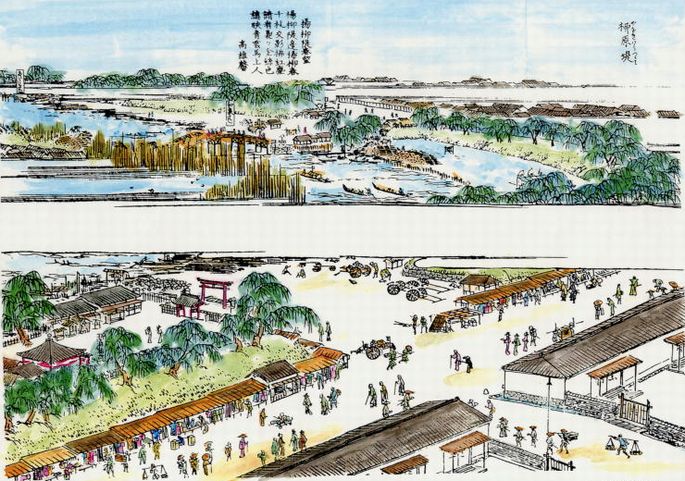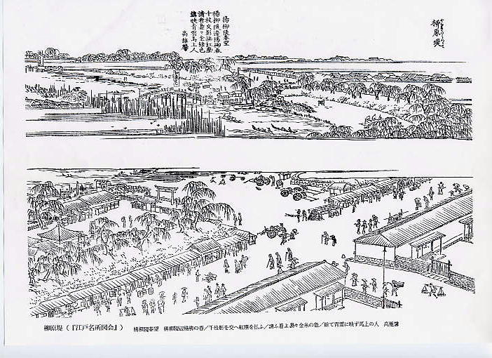 柳原堤春望 楊柳?辺楊柳の春/千枝影を交へ紅塵を払ふ/請ふ看よ?々金糸の色/総て青雲に映ず馬上の人 高維馨(高野蘭亭)