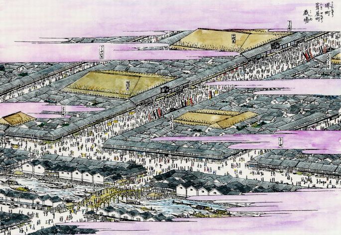 程度の小屋でしたが、後に瓦葺きの本普請が許されて花道や廻り舞台なども整備