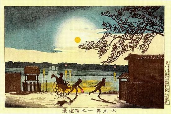 広重『名所江戸百景色』[鉄砲洲稲荷橋湊神社]