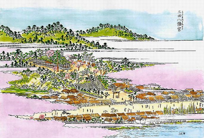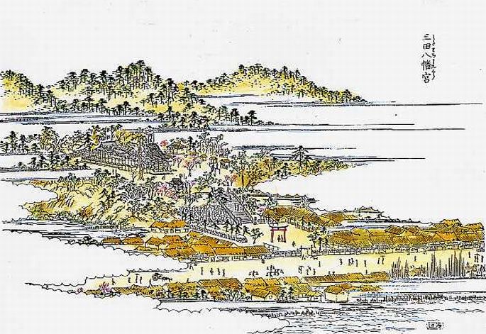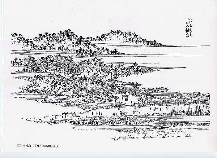 古くは稗田神社・御田神社・三田八幡宮・綱八幡などと呼称されていました。「綱八幡」の「綱」とは源頼光の四天王のひとり渡辺綱のこと。