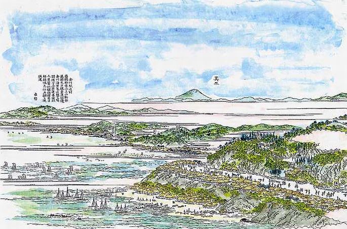 金川駅送別 山餞西のかた看る山上の山/杯を銜(ふく)みために問う太刀鐶/蒼波通らんと欲す金川の海/紫気遥かに懸かる玉笥関/ 遊子浮雲遅暮の涙/故人衰鬢別離の顔/駅亭は銷魂の色を解せず/征馬翩々として往還を送る 南郭
