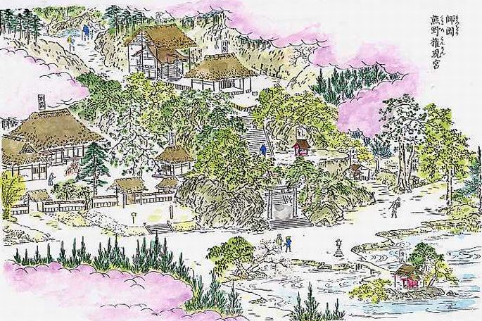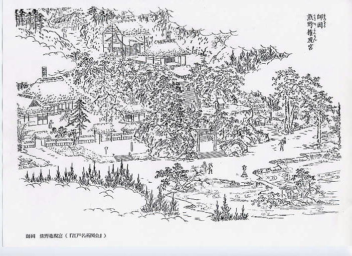 熊野神社正面にある小さい池のようなものが図会の手前にある水辺なのでしょうか。
