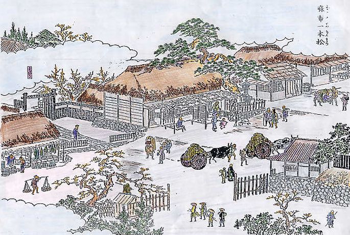 絵の正面に茶店がありますね。〔凄い奴〕はこの茶店に入り、裏から出て、録之助をまきます。