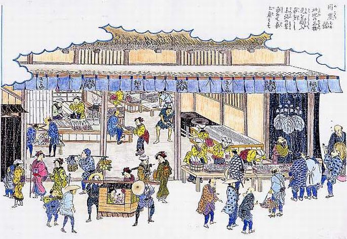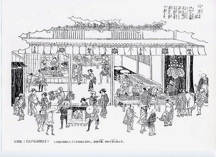 池波小説ではほとんどの場合に「目黒の黒飴」としているが、諸史料をあらためると、 「白飴」だったとある。池波さんはこの絵のタイトル「目黒/飴」が2行に分けて書かれているのを「目黒飴」とつづけて読み、「目黒の黒飴」 と解したとおもわれる。