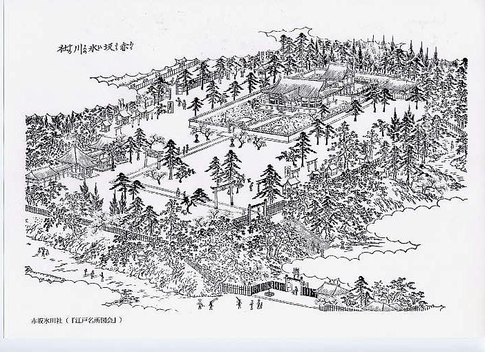 長谷川家の拝領屋敷は、寛延4年(1747)、銕三郎が5歳まで、この氷川神社の北、 赤坂築地にあった。