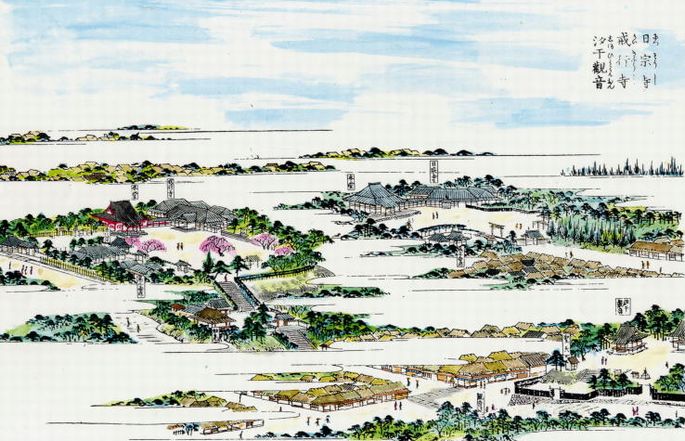 寺の形は変わっても道なりは同じなのでこの辺りを歩くと当時と変らぬ土地の形に容易に想像がつきます。初めての風景絵図の塗り絵で、桜があったことから春を思い浮かべて全体に色が淡く塗ってしまい、画像は色が残っていませんが、実物は上手く塗れたと思います。