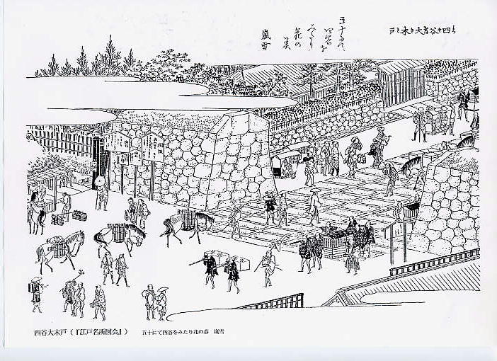 おまささんもお持ちとおもうけど、川田 寿さん『江戸名所図会』(東京堂出版)によると、この大木戸は元和2年(1616)に設置され、寛政4年(1792)に廃止されたそうです。
