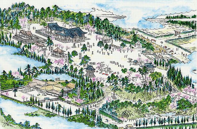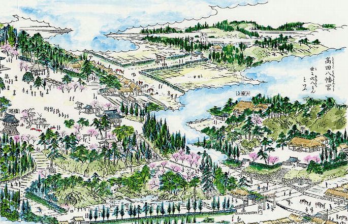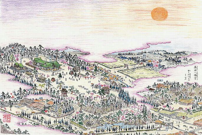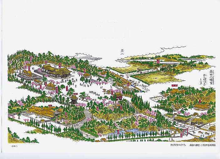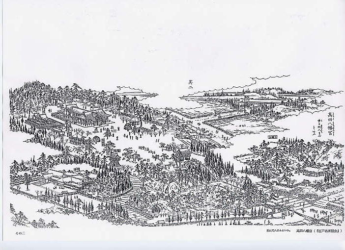「四八幡巡り」でこの穴八幡を訪れたのは2002年の2月23日でした。会員有志の塗り絵を奉納したのも懐かしい思い出です。絵の右隅から中央にかけて描かれている『早稲田通り』の急峻な様子が興味を引きますね。