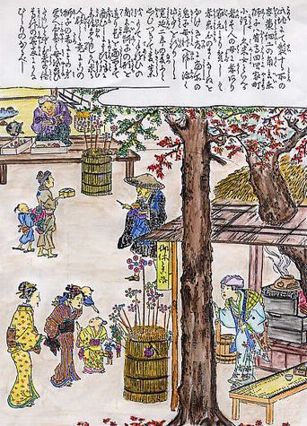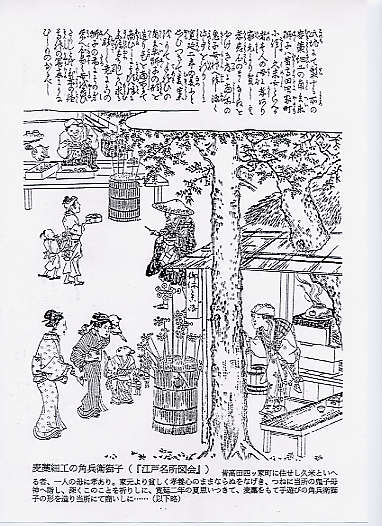 今でも雑司が谷鬼子母神の「すすきみみずく」は有名です。藁を編んで作った物に参詣土産の玩具を差し込んで売っていました。差し込んだ玩具は「すすきみみずく」や「麦藁細工の角兵衛獅子」でした。