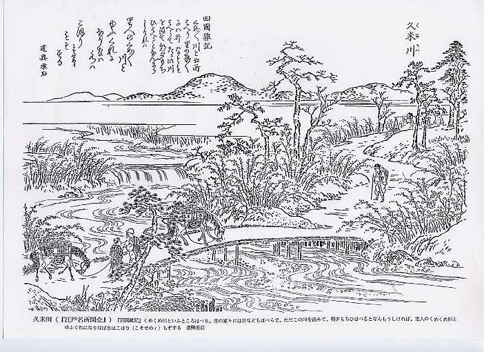 『回国雑記』 くめくめ川といふところはべり。里の家々には井などもはべらで、ただこの川を汲みて、 朝夕もちひはべるとなんもうしければ、