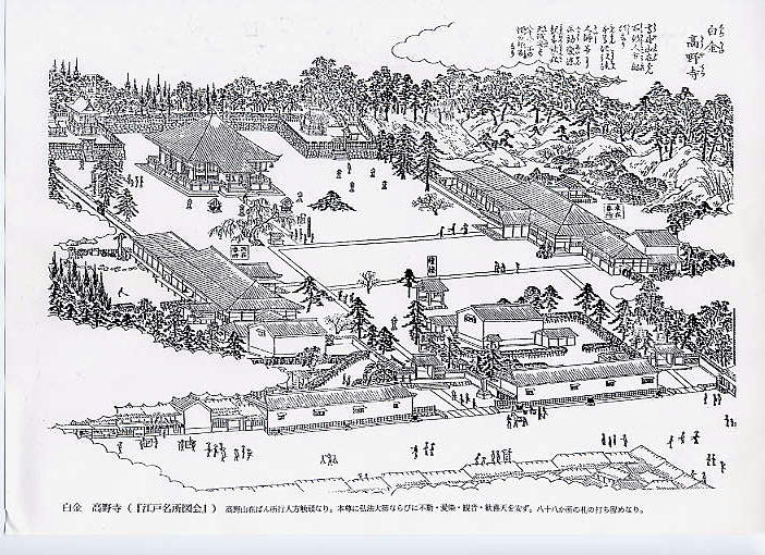 高野山在ばん所行人方触頭なり。本尊に弘法大師ならびに不動・愛染・観音・歓喜天を安ず。八十八か所の札の打ち留めなり。