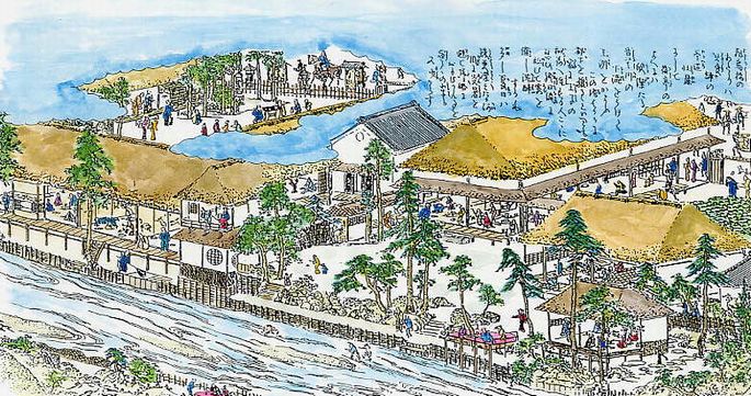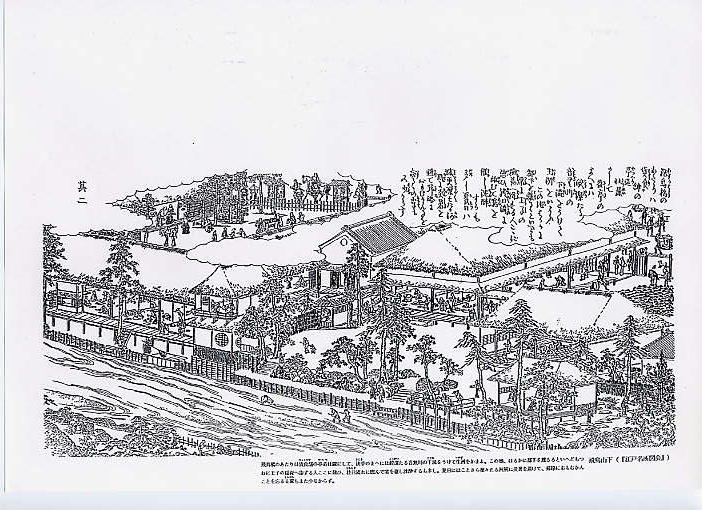 飛鳥橋のあたりは、貨食舗(りょうりや)の亭造(やつくり)壮麗にして、後亭(さじき)のまへに皎潔(こうけつ)たる音無川の下流 (ながれ)をうけて、生洲(いけす)をかまふ。この地はるかに都下を離るるといへども、つねに王子の稲荷へ詣ずる人ここに憩ひ、終日 (ひねもす)流れに臨んで、宴を催し、沈酔ーするも多し。夏日はことさら凛々たる河風に炎暑を避けて、帰路におもむかんことを忘るる輩 (ともがら)もまた少なからず。