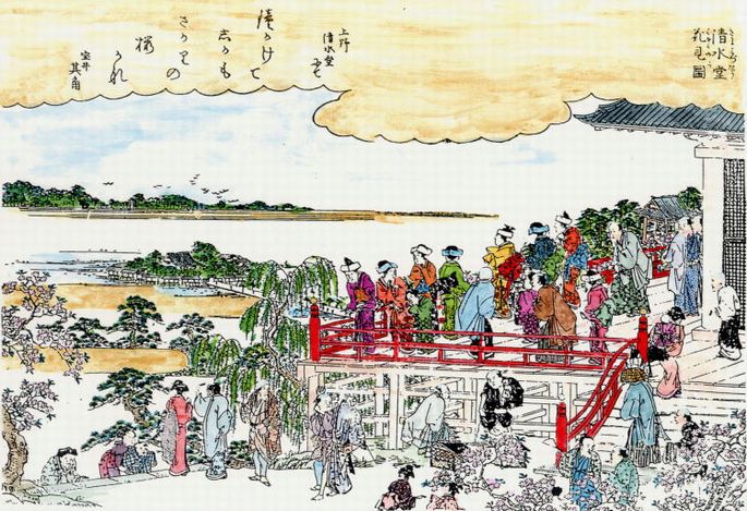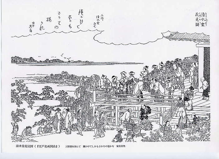 広重の「江戸百景」も清水寺と不忍池、桜花が調和して見事です。