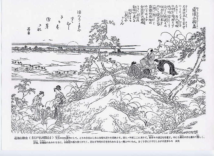 「まつ虫が鳴きはじめると、鈴虫・馬追いも負けじと音(ね)をあわす」『江戸名所花暦』(岡山鳥著、長谷川雪旦絵)の道灌山の項である。