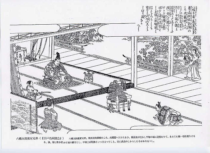 奥州征伐凱陣のころ、武蔵国に入りたまひ、豊島某が住みし平塚の城に逗留ありて、あるじに鎧一領を賜りけるを、後、塚に築き収めて、 城の鎮守とし、平塚三所明神といつきまつりしも、実に武功のしからしむるゆゑなるべし。