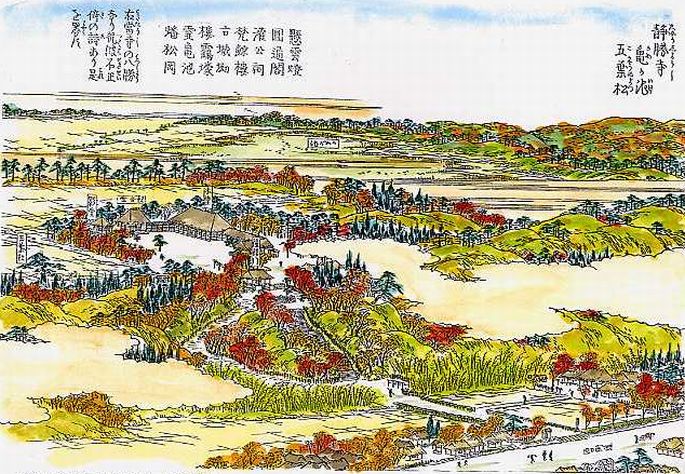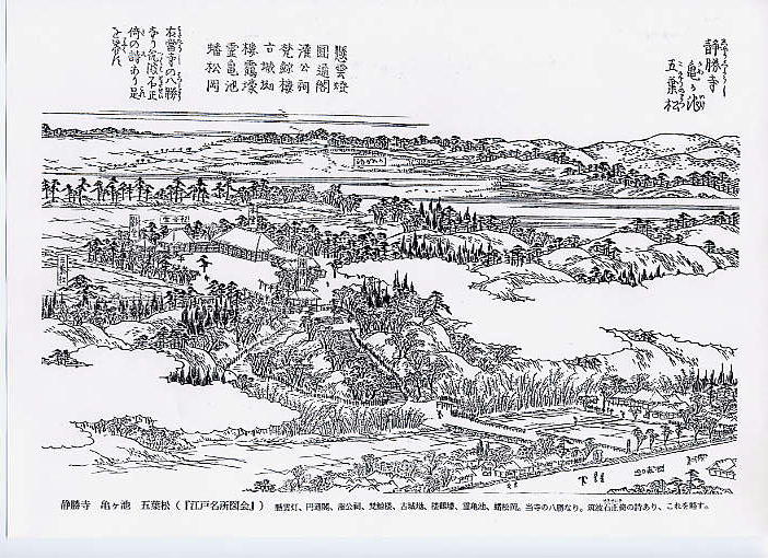 懸雲灯 円通閣 潅公祠 梵鯨楼 古城坳 楼靏壕 霊亀池 蟠松岡。右、当寺の八勝なり。筑波石正倚(せきせいき)の詩あり、 これを略す。