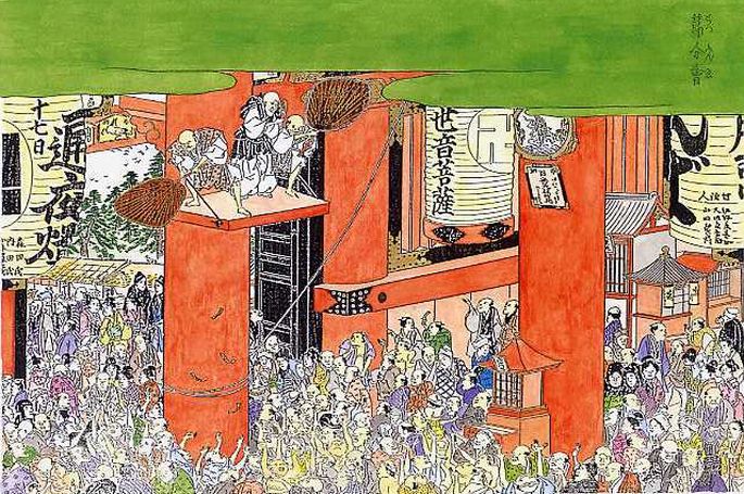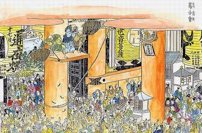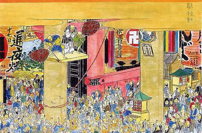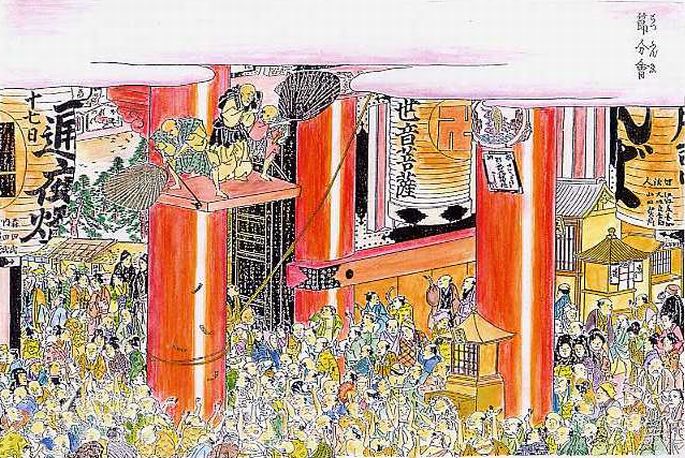 江戸開府で、いちはやくにぎわったのが浅草寺かいわい。寺側が催したさまざまのプロモーション策の功であろう。