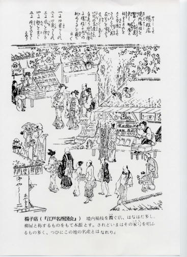 境内楊枝を鬻ぐ店、はなはだ多し。柳屋と称するものをもて本源とす。されどいまはその家号(いえな)を唱ふるもの多く、 つひにこの地の名産とはなれり。僧祇律に楊枝に五つの利あることを載せたて云く、「一に口苦からず、ニに口臭からず、三に風を除き、 四に熱を去り、五に痰をのぞく」とあり。
