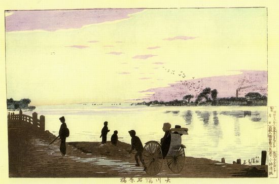 小林清親 大川端石原橋(対岸は御厩の渡し)
