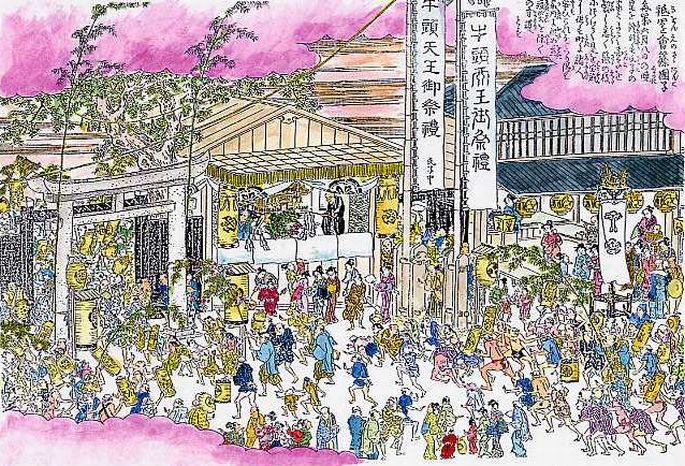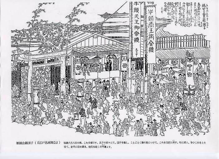 毎歳六月八日の暁、これを修行す。氏子の家々にて、団子を製し、ことごとく篠の枝につけて、これを宝前に供す。時に諸人、 争ひこれをとり得て、家内に収め置き、疫災を除くの守護(まもり)とす。