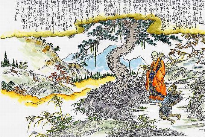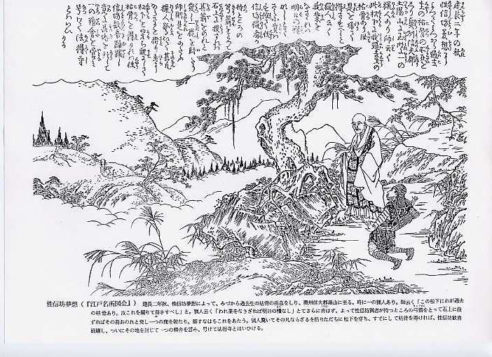 建長2年(1250)の秋、性信坊夢想によって、みづから過去生の枯骨の所在をしり、奥州信夫郡土湯山に至る。時に一(ひとり) の狩人あり。師云く、「この松下にわが過去生の枯骨あり。汝これを掘りて得さすべし。と。狩人云く、「われ業をなさざれば明日の糧(かて) なし」とて、さらに肯(うけか)はず。よって生信坊猟者が持つところの弓箭(きゅうせん)をとって石上に投ずれば、その箭(や) おのれと発し、一つの鹿を射たり。師すなはちこれをあたふ。猟人驚いてその凡ならざるを悟り、ただちに松下を穿ち、 すでにして枯骨を得ければ、性信坊歓喜踊躍し、つひにその地を封じて一つの精舎を営み、号つけて法得寺といひける。