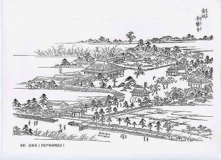 掲載されている住所で地図をたどってみますと、安楽寺とちゃんと載っていました。もちろん今は変わっているのでしょうが、まだどの位この風景が残っているのか、訪ねてみたいと思います。これも、「江戸名所図会」を塗る楽しみですね。