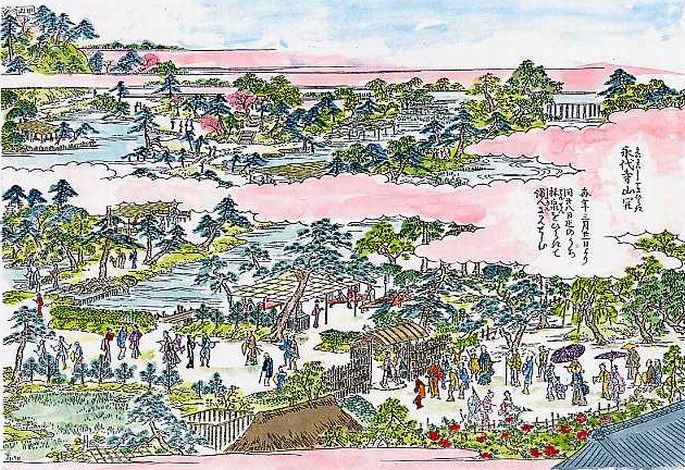 毎年三月廿一月より同廿八日までのうち、林泉をひらきて諸人に見せしむ。