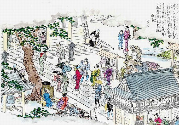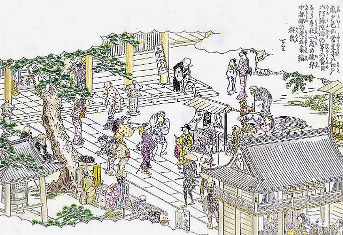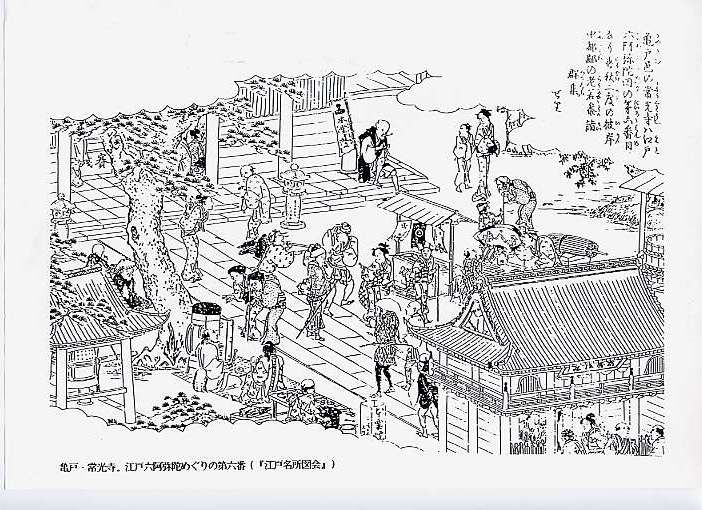 亀戸邑の常光寺は江戸六阿弥陀回(めぐ)りの第六番目なり。春秋二度の彼岸中、都鄙(とひ)の老若参詣群集せり。