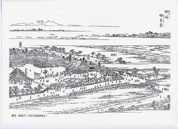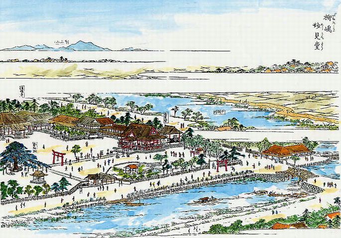 絵の左端に描かれているのが霊樹・影向松(ようごうまつ)で、別名「星降(くだ)り松」 「千年松」ともいわれる。妙見は北極星。これが松の頂きにかかるのか。