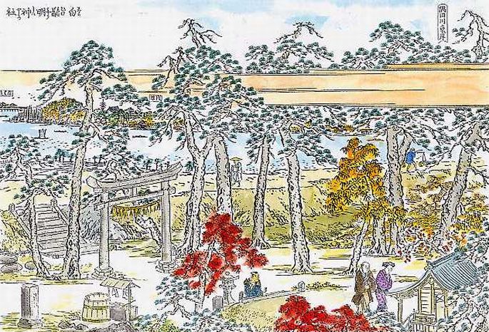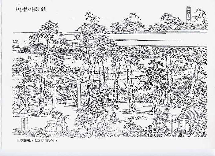 今の白髭神社には大きなきささげの木がありますが、この図会では松の木が主役ですね。