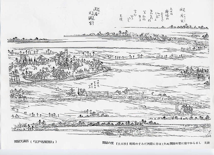 現在は千住中町の氷川神社境内にある天満宮の社殿前に「関屋天満宮の碑」が建っています。