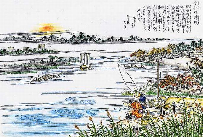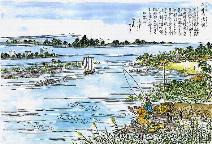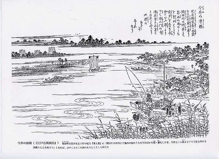 柴屋軒(さいおくけん)宗長が永正六年の紀行に『東土産』に、「隅田川の河舟にて葛西の府のうちを半日ばかり葭(よし)・藘(あし) をしのぎ、今井といふ津(わたり)より下りて、浄土門浄興寺に立ち寄りて」とあれば、はやくよりこの津のりしことしられたり。