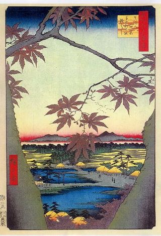 広重『名所江戸百景』[真間の紅葉手古那の社継はし]