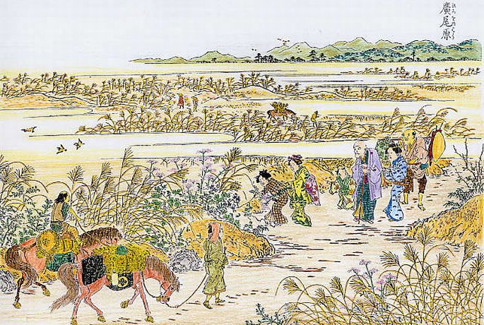 広重「江戸名所百景」で松のテーマは[八景坂鎧掛松][千束池袈裟掛松][小名木川五本松]がありますが、江戸名所図会と見比べれると面白いですね。