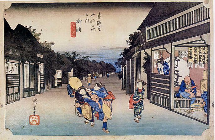36御油・旅人留女(広重)