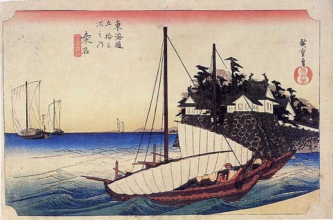 宮から桑名宿までは船で七里、3~4時間、潮や風によっては何倍も掛かり、船に弱い人には辛い船旅ですね、