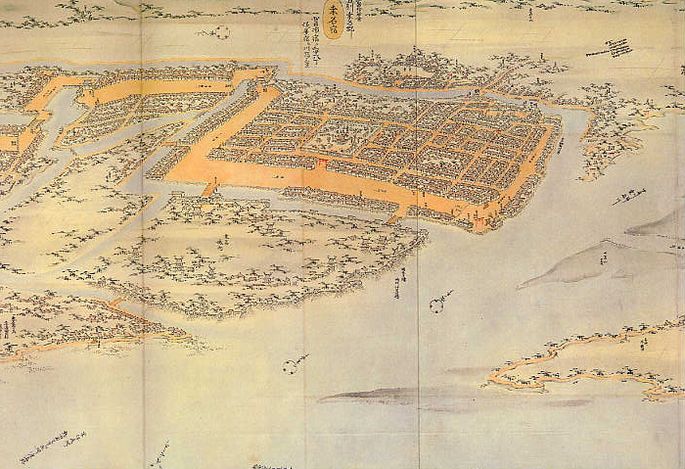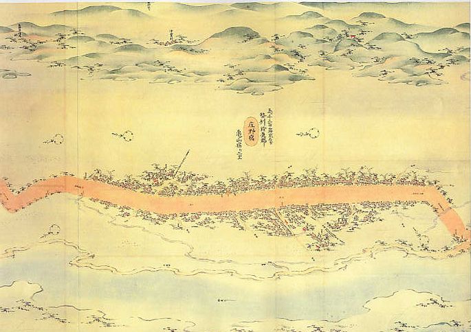6万石。亀山藩の城下町。地図とは直接にはかかわりはないが、『鬼平犯科帳』[14-5 五月闇]で、密偵・伊三次 (いさじ) が〔強矢(すねや) 〕の伊佐蔵に刺され、江戸のここの藩邸の前。治療の部屋も貸してくれた。