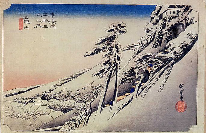 48亀山・雪晴(広重)