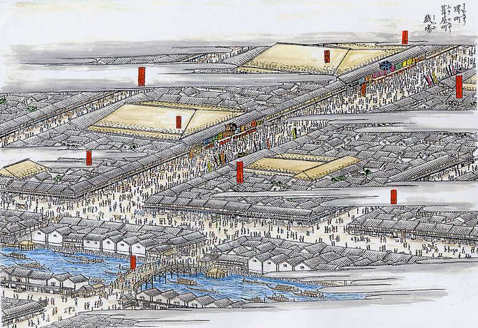 0032堺町葺屋町戯場 塗り絵師:豊 麻呂 |