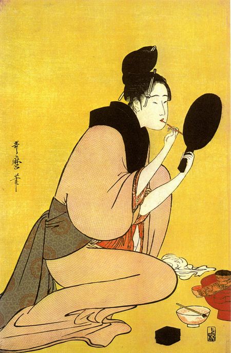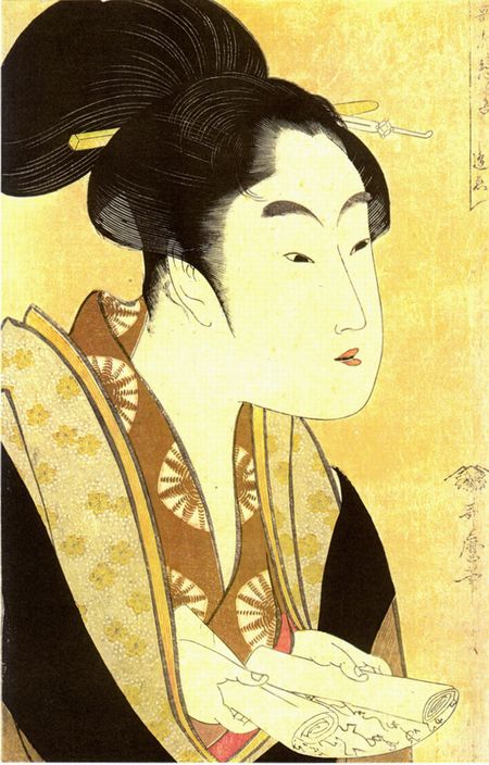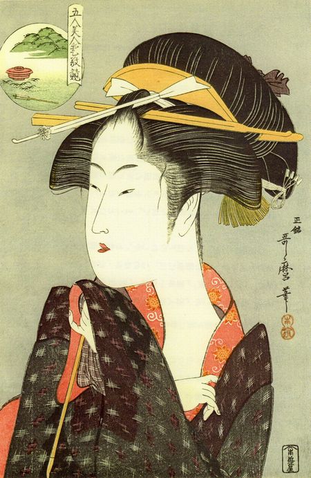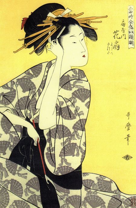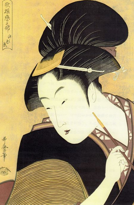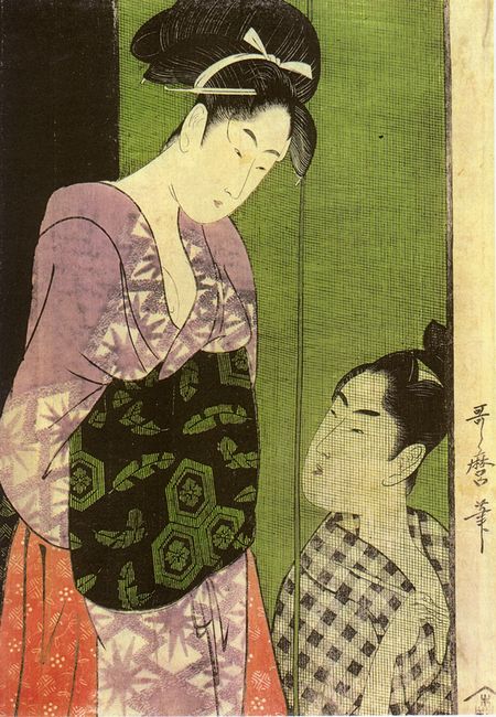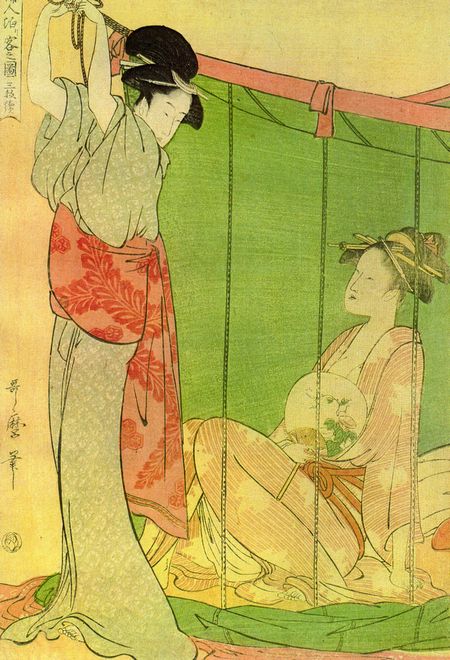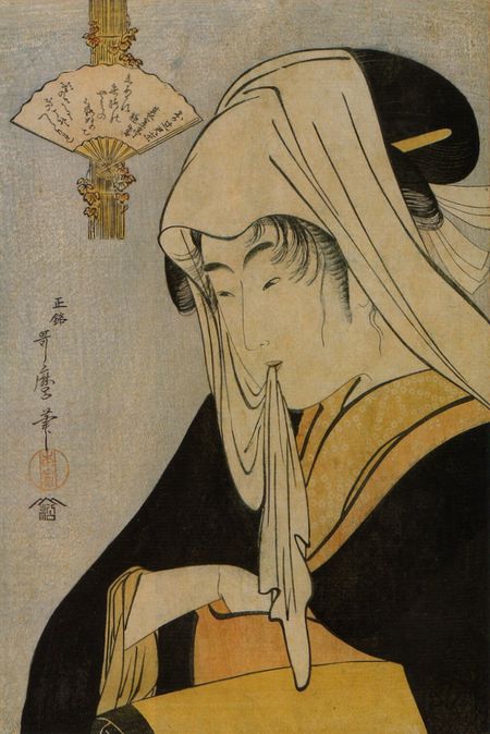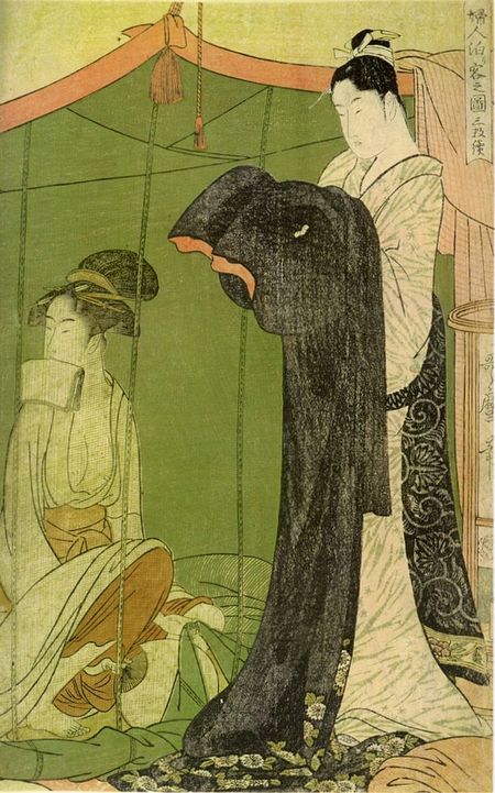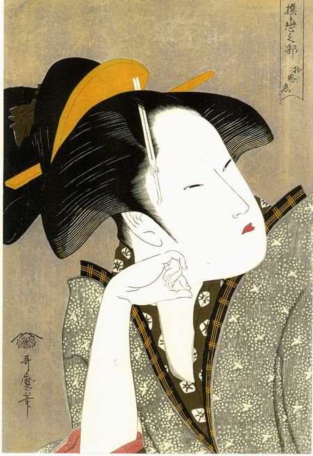 「歌満くら・揚げ帽子」 揚げ帽子は外出時にかぶるから、出先での逢引きか