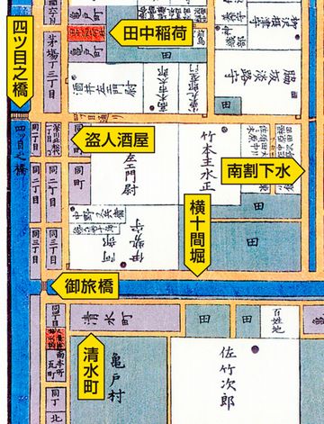 「前の道を竪川(たてかわ)沿いに3丁ばかり東へ行って、旅所(たびしょ)橋をわたった左手、清水町の裏長屋で---」
