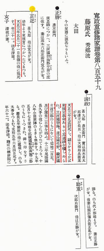 元亀三年十二月二十二日、三方ヶ原の役に供奉し戦功あり。浜松城にをいて御槍一筋を賜ひ、かつ、伊賀の者、百五十人を預けらる。