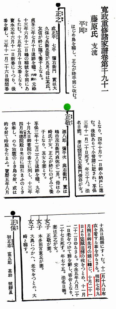 それで、氏名が記されなかった14人を『徳川重修l諸家譜』の活字本22冊をぱらばらくって、以前に見つけていた顛末と、G.W.にさらに補った経緯は、[銕三郎の初見仲間の数]の上記(1)に報告している。