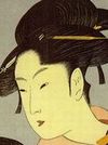 「それは、よくないな。床の中で、きちんと躾(しつけ)るんだな」(歌麿『寛政3美人』 お勝のイメージ)